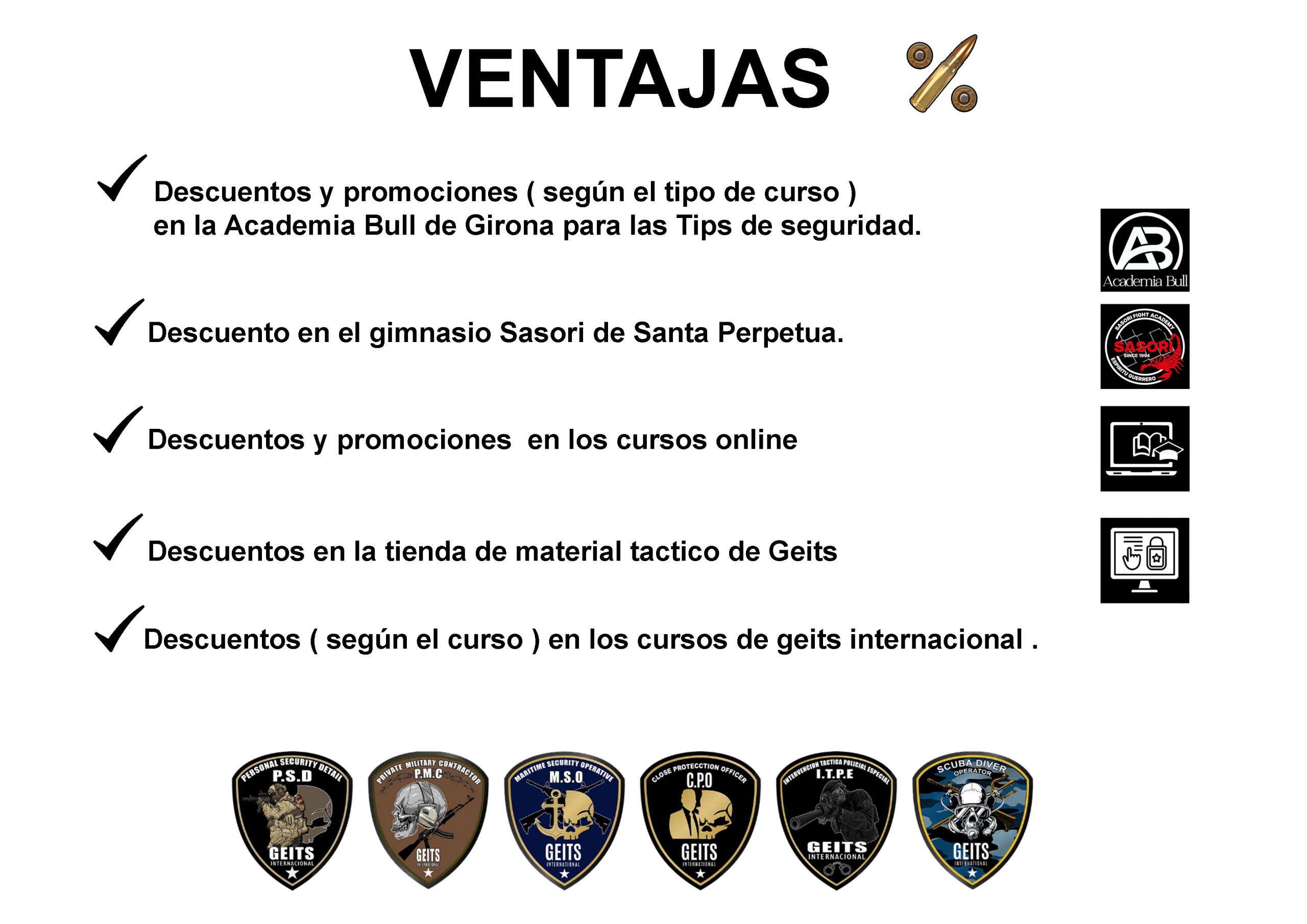 - Descuentos ( según el curso ) en los cursos de geits internacional.